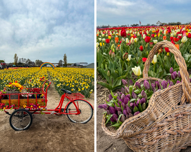 - Die Tulpenfelder in der Umgebung nicht vergessen. Wer auf dem Weg zum Keukenhof oder auf dem Rückweg einfach durch die Bollenstreek fährt und anhält, bekommt die ikonischen Feldbilder umsonst. Einfach die Augen offenhalten und spontan stoppen – die Felder sind überall. Aber Wichtig: Die Felder einfach zu betreten ist in der Regel nicht erlaubt, da es sich um landwirtschaftliche Nutzflächen der Züchter handelt. Nur an speziell ausgewiesenen Spots ist das Betreten gestattet.