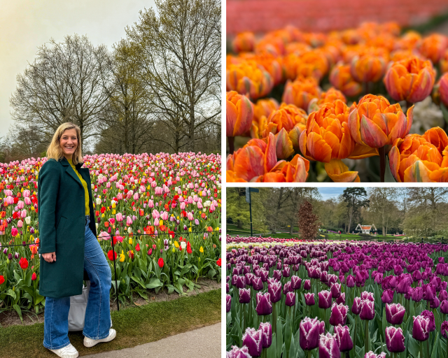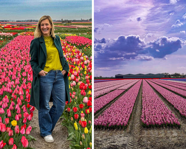 Was ich erlebt habe: Felder in Farben, die fast unwirklich aussehen. So kräftig, so satt – als hätte jemand einen Farbfilter über die gesamte Landschaft gelegt. Kilometer um Kilometer Rot, Gelb, Lila, Rosa – direkt neben der Straße, so weit das Auge reicht. Und mittendrin der Keukenhof, der berühmteste Blumengarten der Welt.